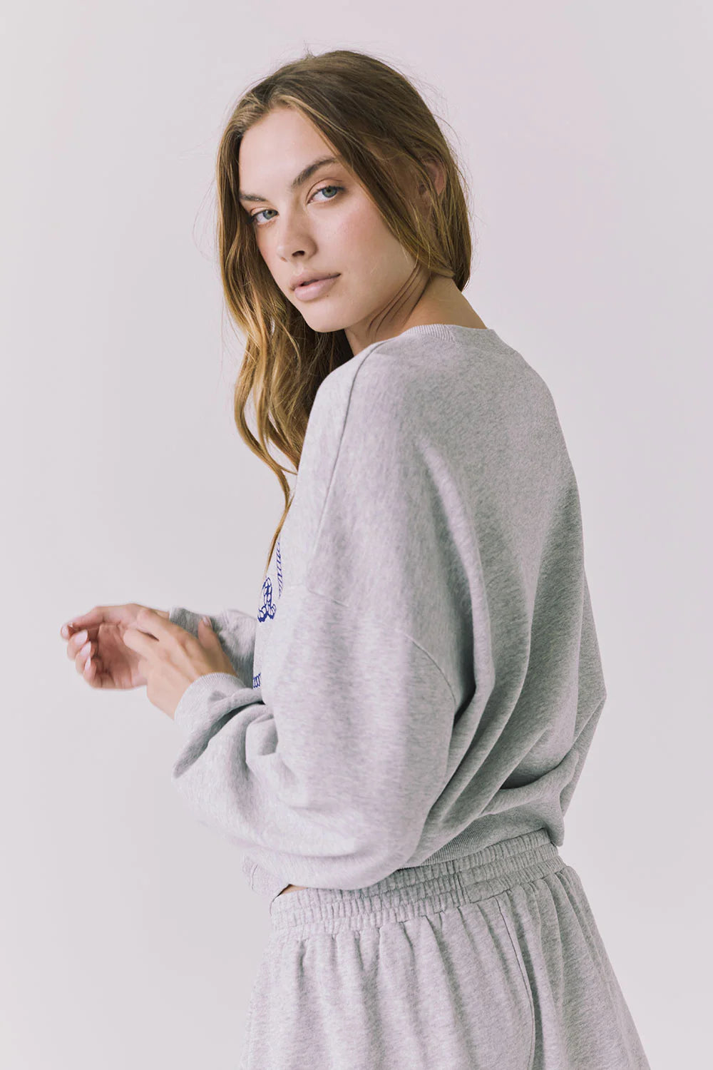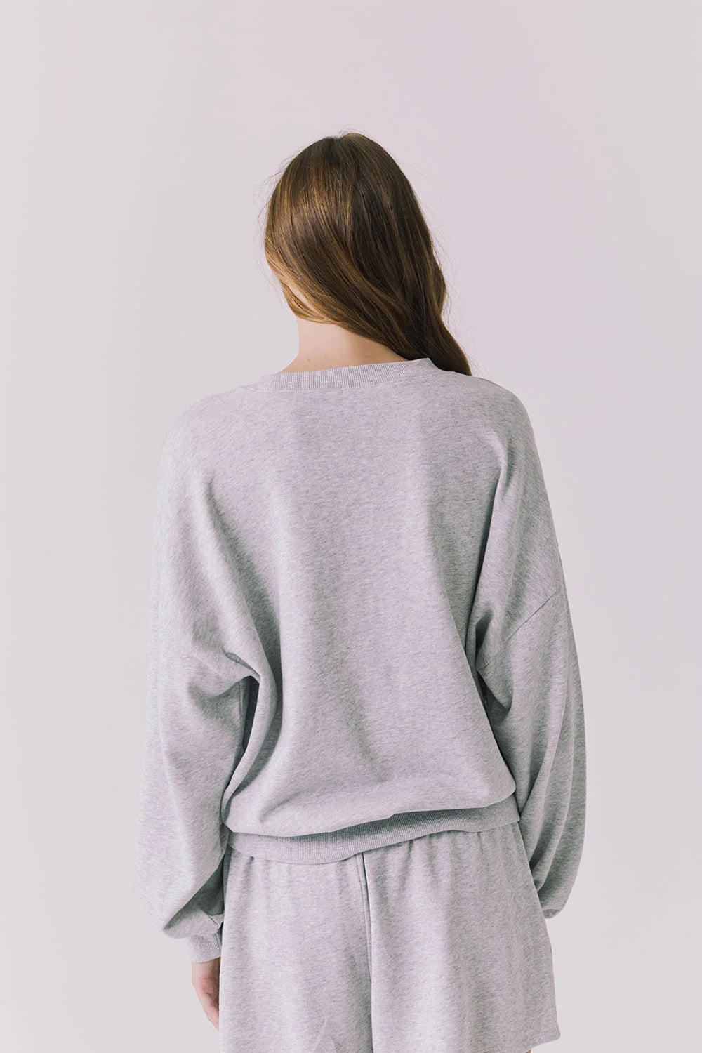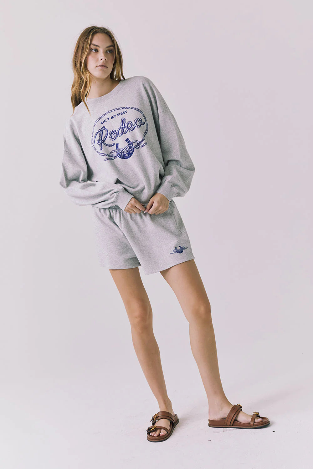 The Ain't My First Long Sleeve in heather grey blends playful wit and vintage style.