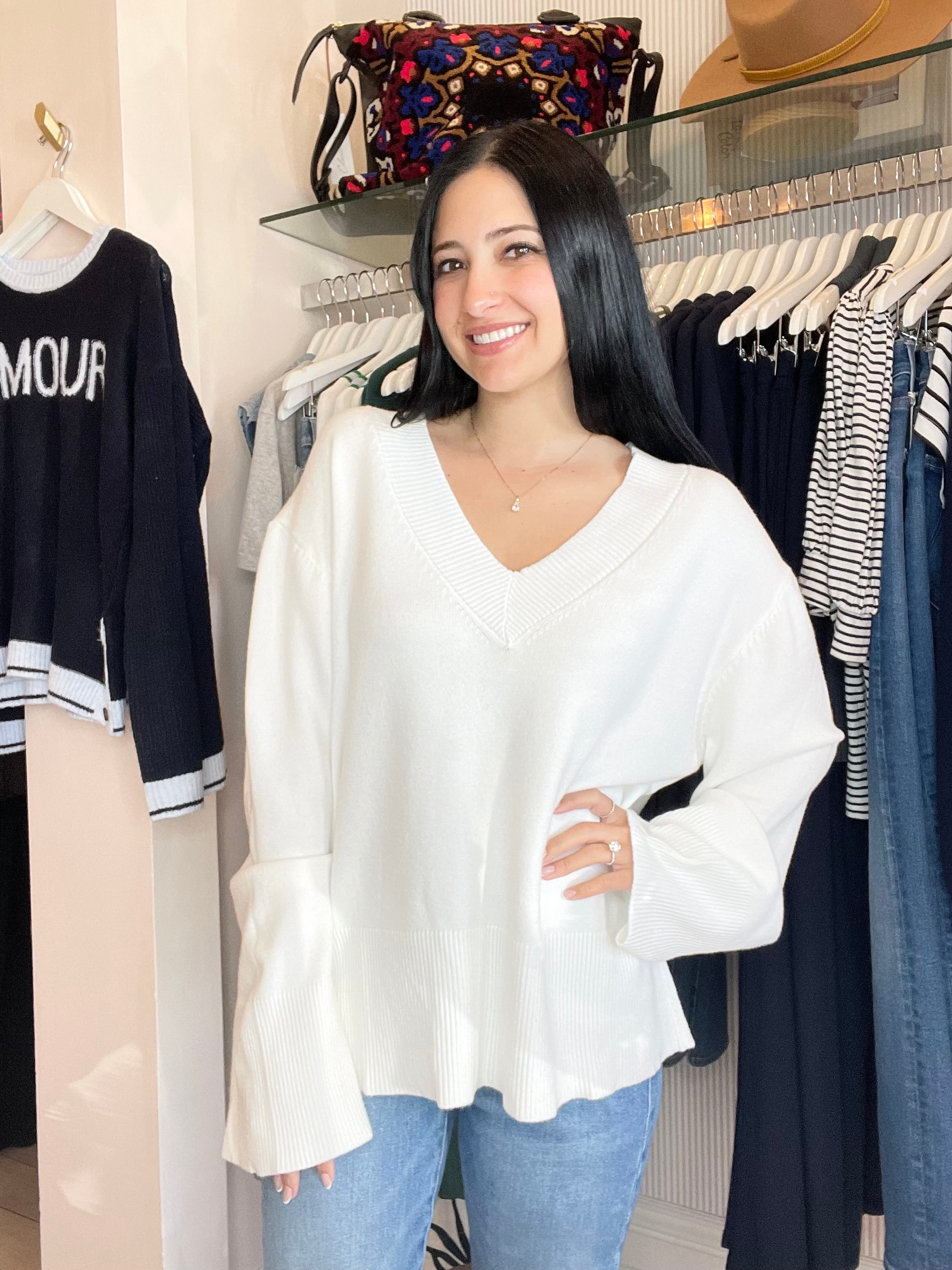 Viscose blend sweater with V neckline and long wide sleevesFit: relaxedModel is 175cm / 5'9" wearing size S.