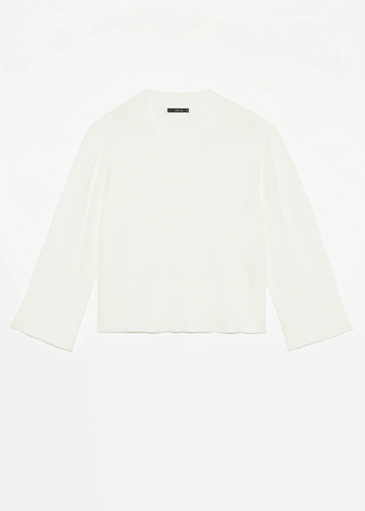 Viscose blend sweater with V neckline and long wide sleeves