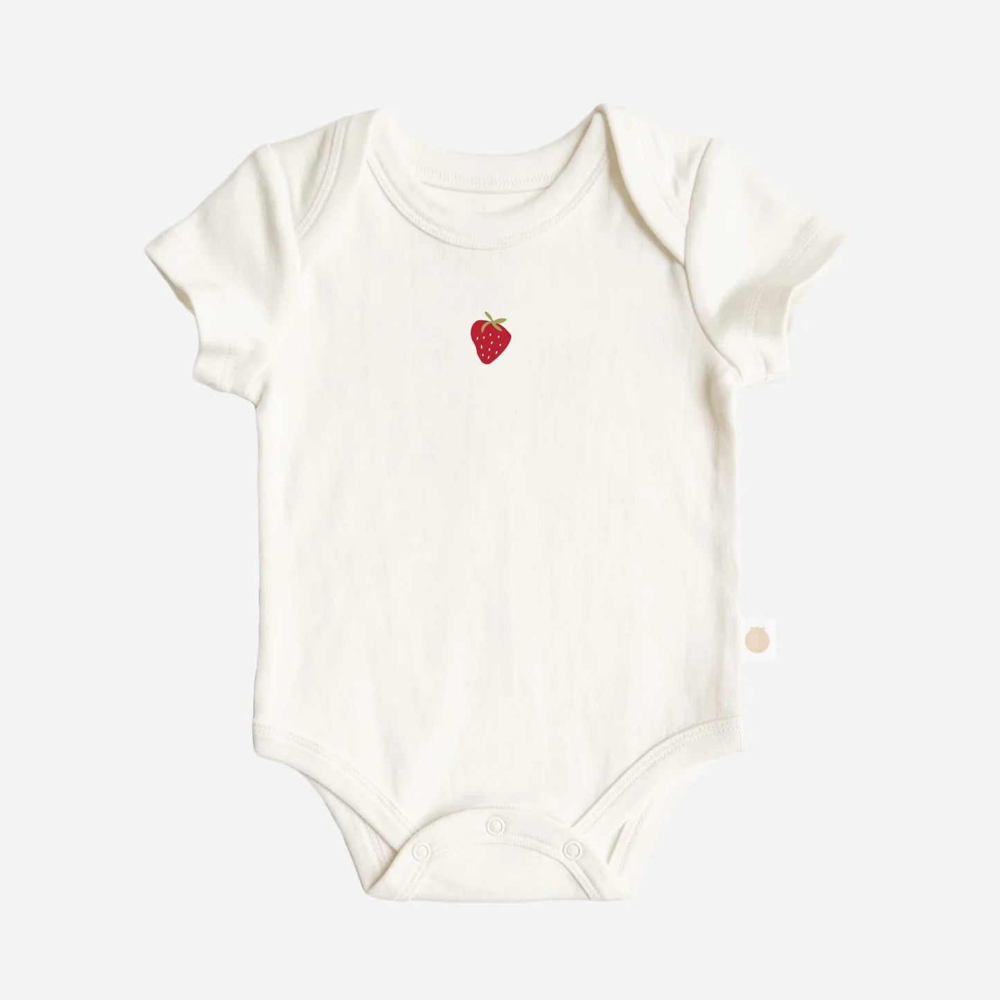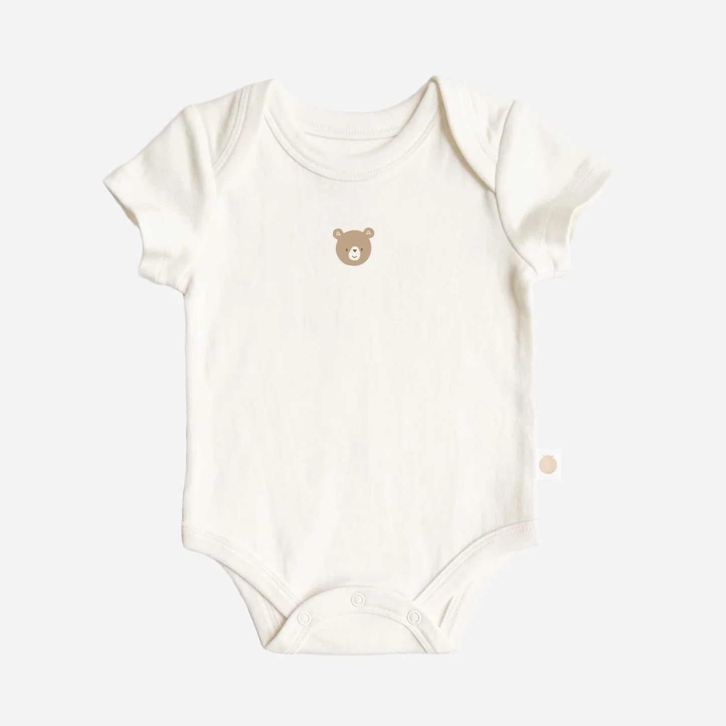 Complete your gift set this 100% Organic Cotton onesie, matching our blankets, teethers, accessories, and cards. This luxurious soft baby onesie features a lap shoulder design and three snaps for a easy change. Only one size 0-6m available.