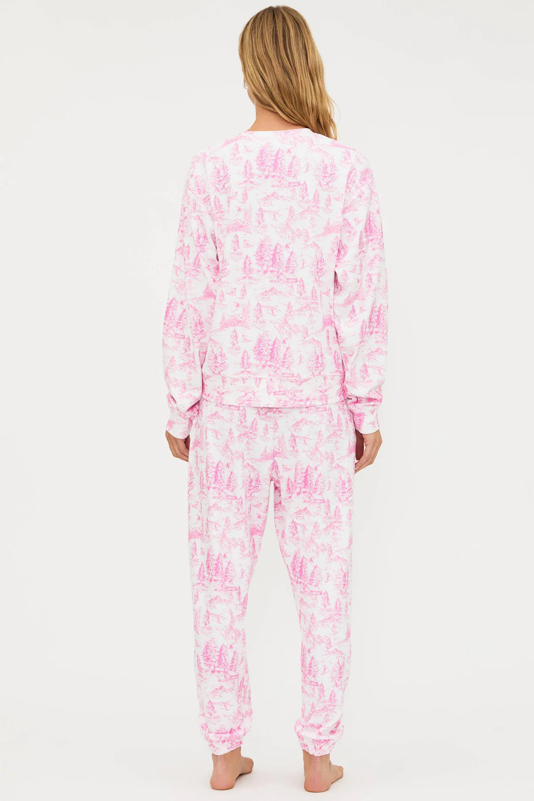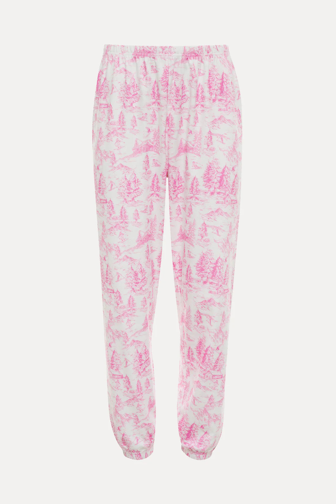 Soft brushed fleece for an ultra-cozy feel   Elastic waistband and cuffed ankles for a relaxed fit   Side pockets for easy wear   Allover pink toile print inspired by snowy mountain scenes   Pairs perfectly with the Cassia Top Powder Pink Toile (sold separately) Style Tip: Go full ski-chic by pairing with the matching Cassia Top and Isola Jacket Pink Sands for a lounge look that’s both playful and polished. Model is wearing size small