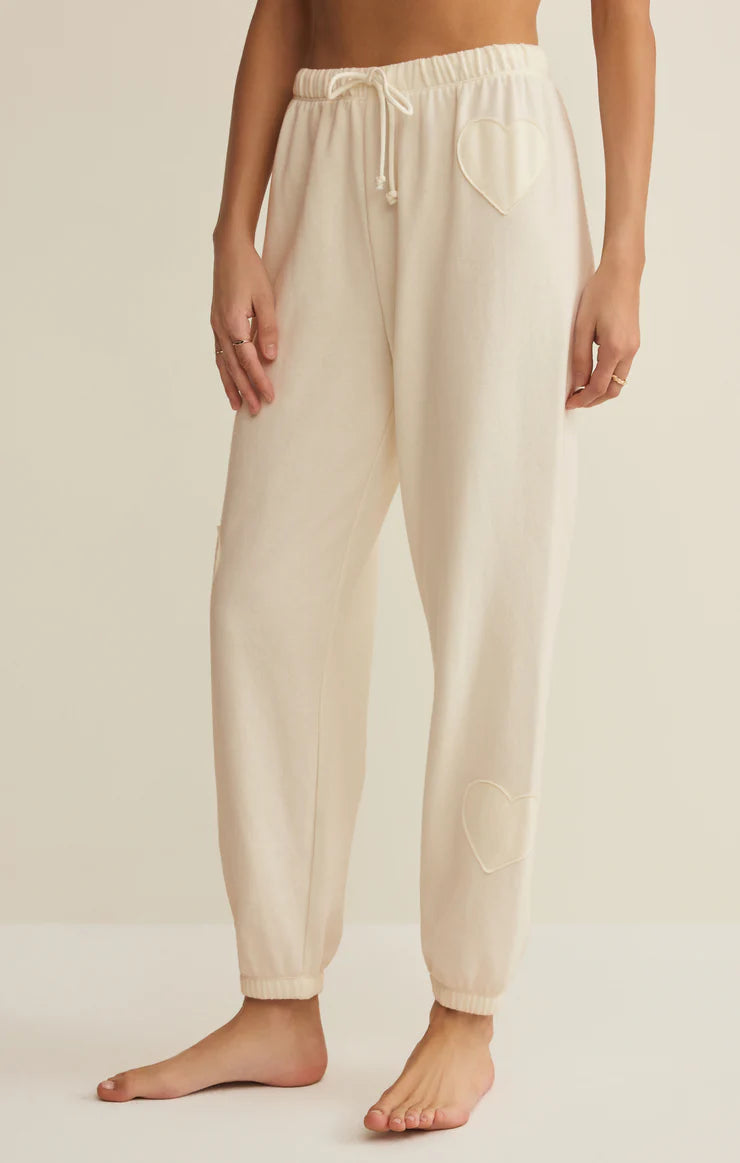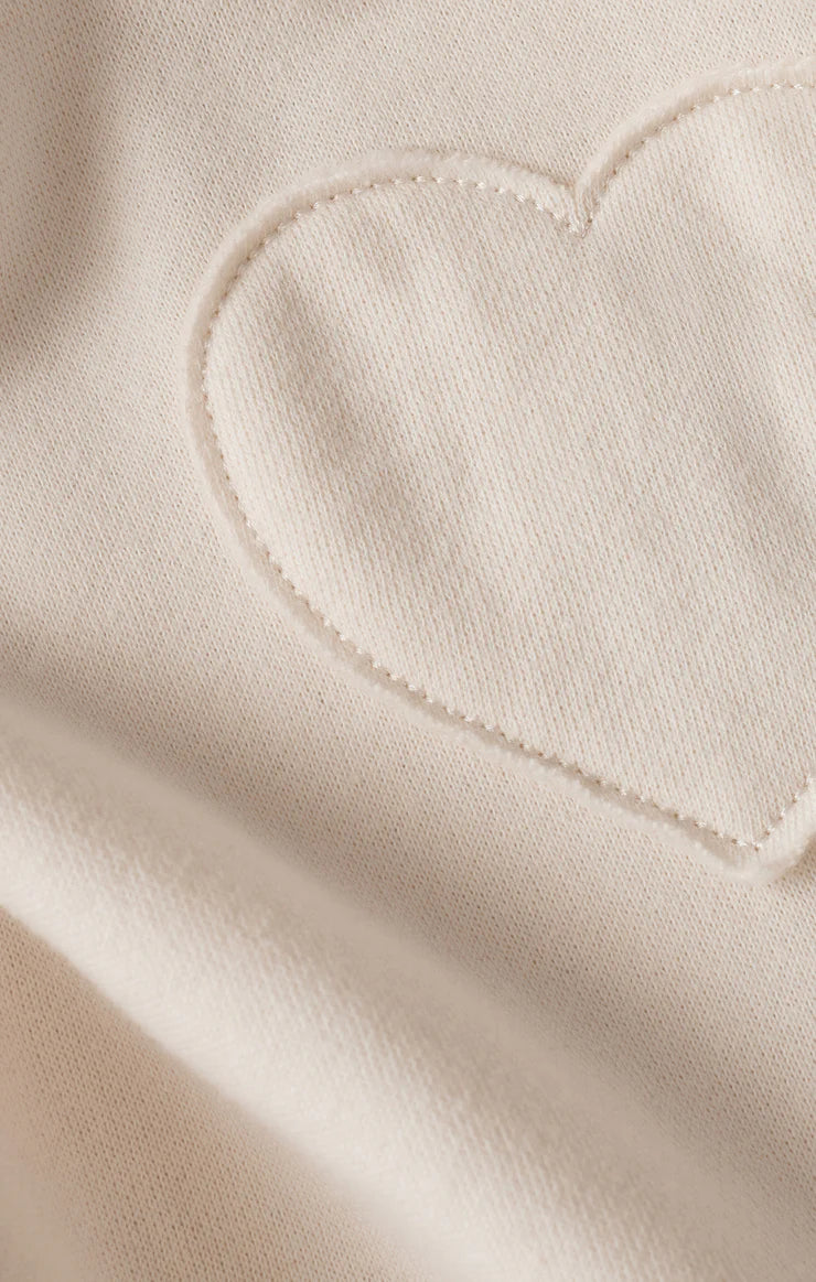 This soft fleece jogger is designed with tonal heart appliqués and a relaxed, tapered fit that’s flattering and comfy. The drawstring waistband and plush interior make it your go-to for lounging and staying in all day.