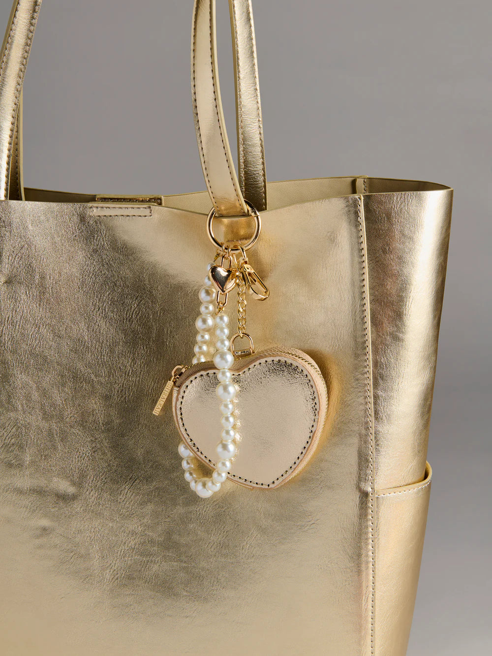 The Heart Pouch Bag Charm/Key Ring adds the sweetest touch of charm to any bag or keychain. Designed in a heart shape with a chic pearl charm and gold-tone hardware, it’s equal parts stylish and functional. With a zip closure, this little pouch is perfect for stashing small essentials like earbuds, coins, or lip balm on the go. Available in multiple colors, it’s a cute companion you’ll want to show off daily.