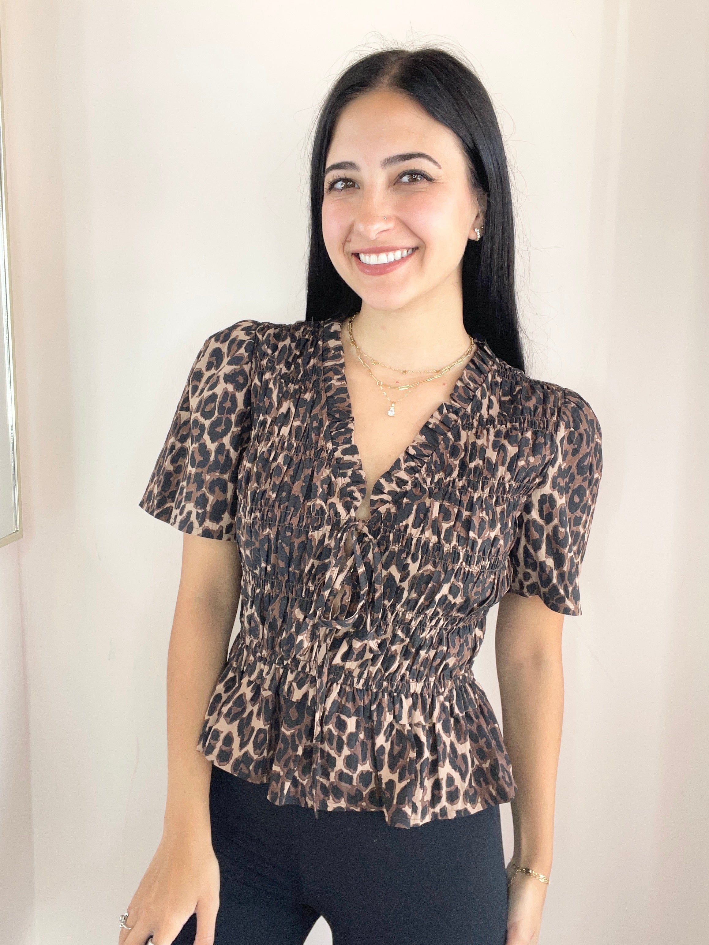 The Portia is a structured peplum top crafted from heavy cotton poplin. Front ties serve as adjustable closures for the plunging neckline, while delicate ruffle details complete the look.