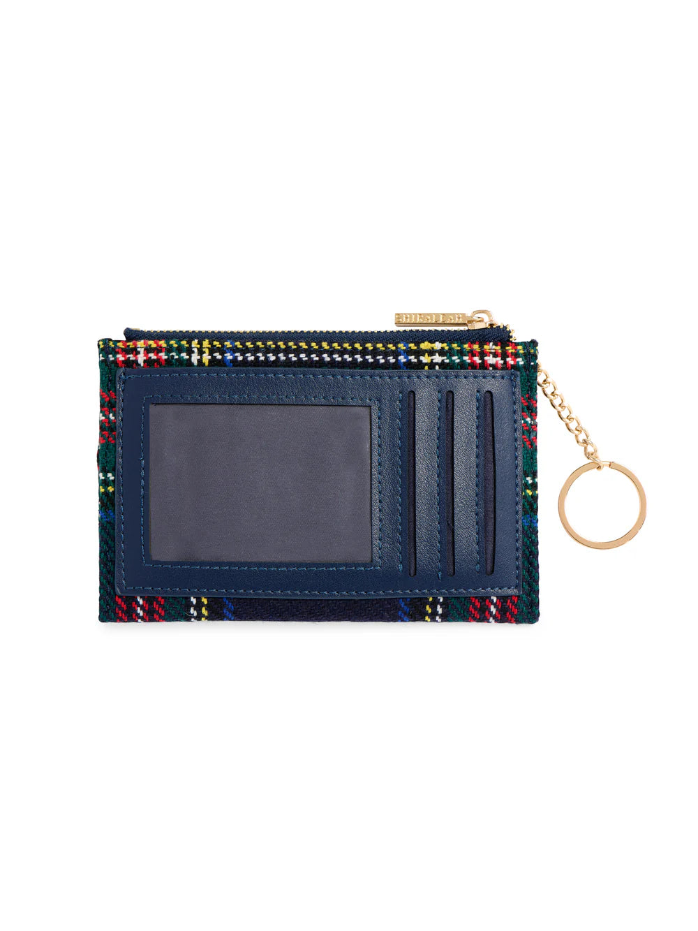 Add a festive twist to your everyday essentials with the Scottie Card Case. Featuring a classic plaid pattern in bold red or navy, this compact cutie packs a punch in the style department. It comes with a zippered pocket, clear ID window, and multiple card slots for everything you need on the go. A gold key ring adds an extra dash of charm—and functionality!