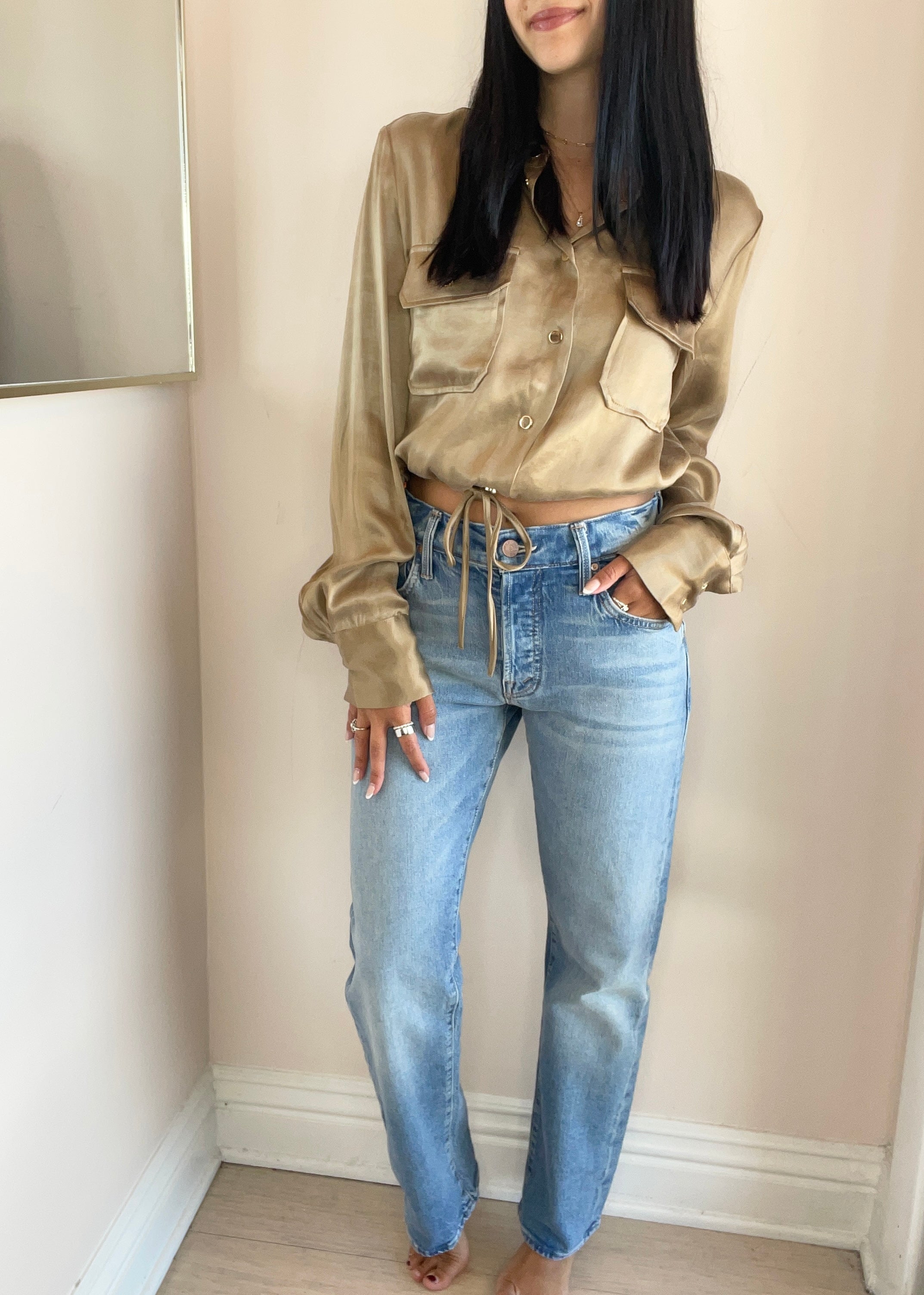 This slim straight-leg was adopted from our men’s line and features a mid rise, button fly, low-set back pockets and a clean hem. Made from stretch denim, Fight For Your Right is a mid-blue wash.